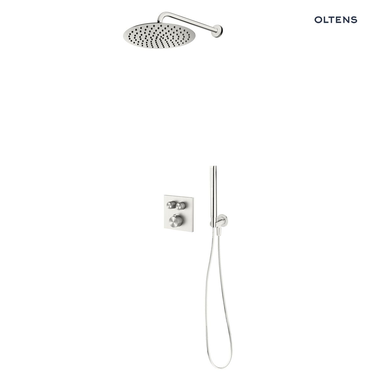 Cechy produktu Zestaw Oltens Onega (S) bateria podtynkowa termostatyczna z deszczownicą 30 cm Vindel i kompletem prysznicowym Ume nikiel 36620910