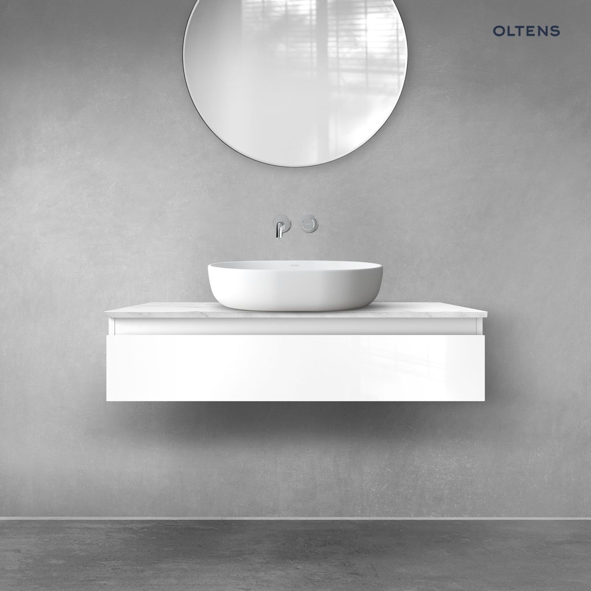 - Wariant koloru Oltens biały połysk, jasny marmur