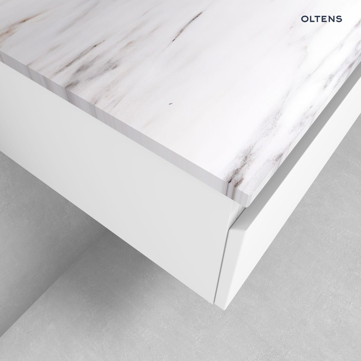 Cechy produktu Zestaw Oltens Vernal szafka 100 cm podumywalkowa wisząca z blatem Tera biały połysk/jasny marmur 68708000