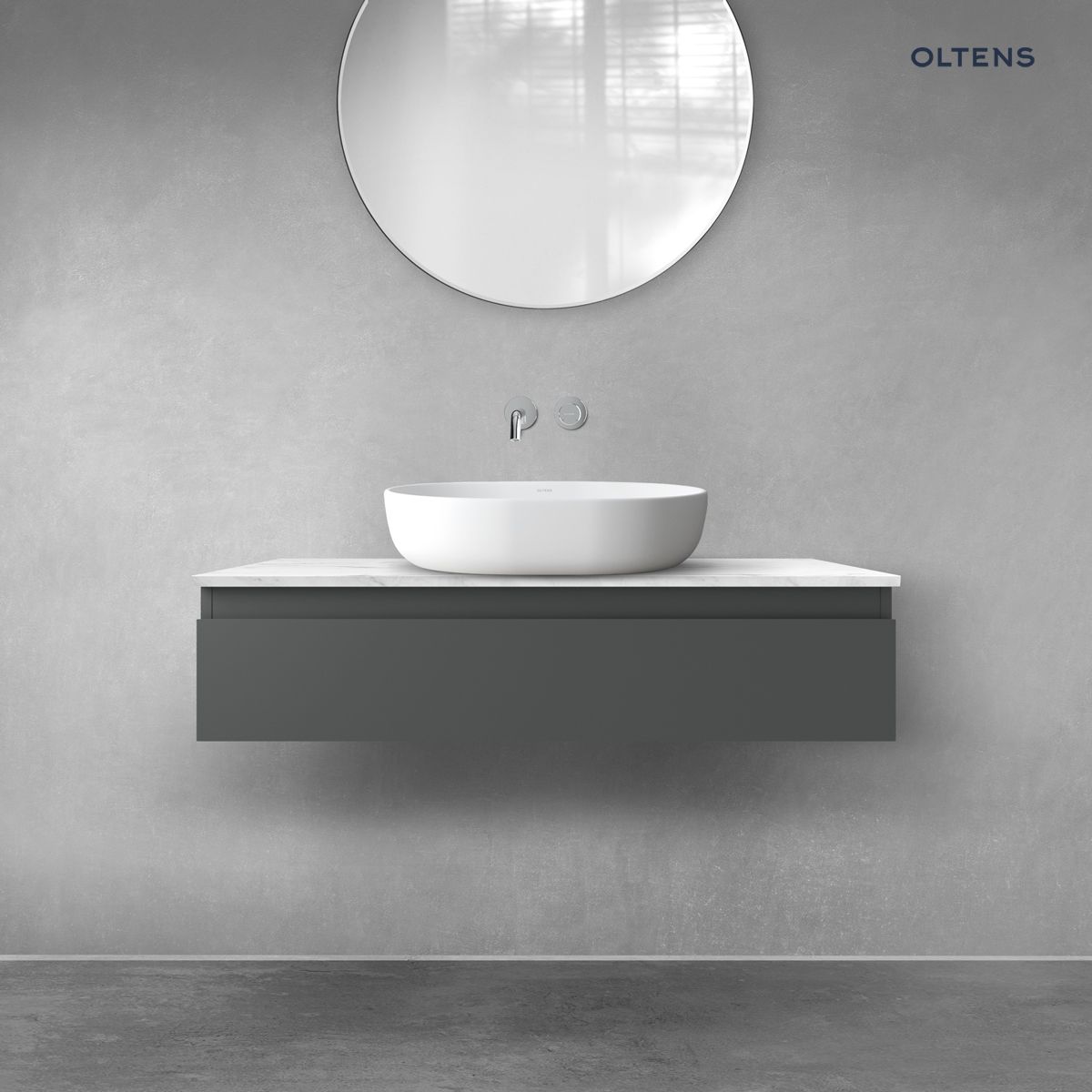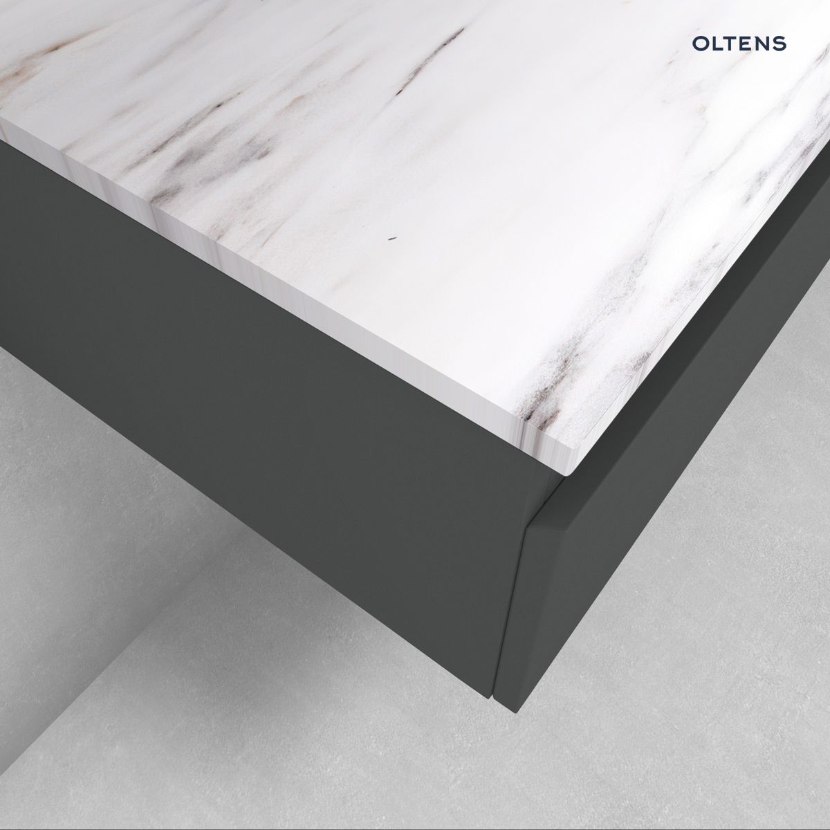 Opis produktu Zestaw Oltens Vernal szafka 100 cm podumywalkowa wisząca z blatem Tera grafit mat/jasny marmur 68708400