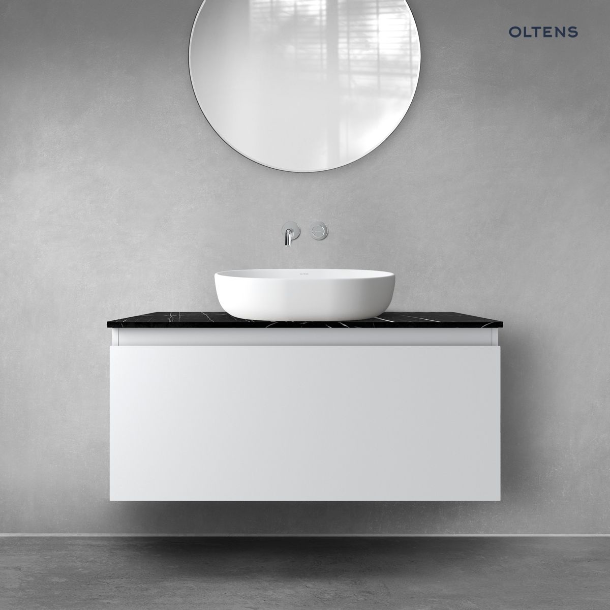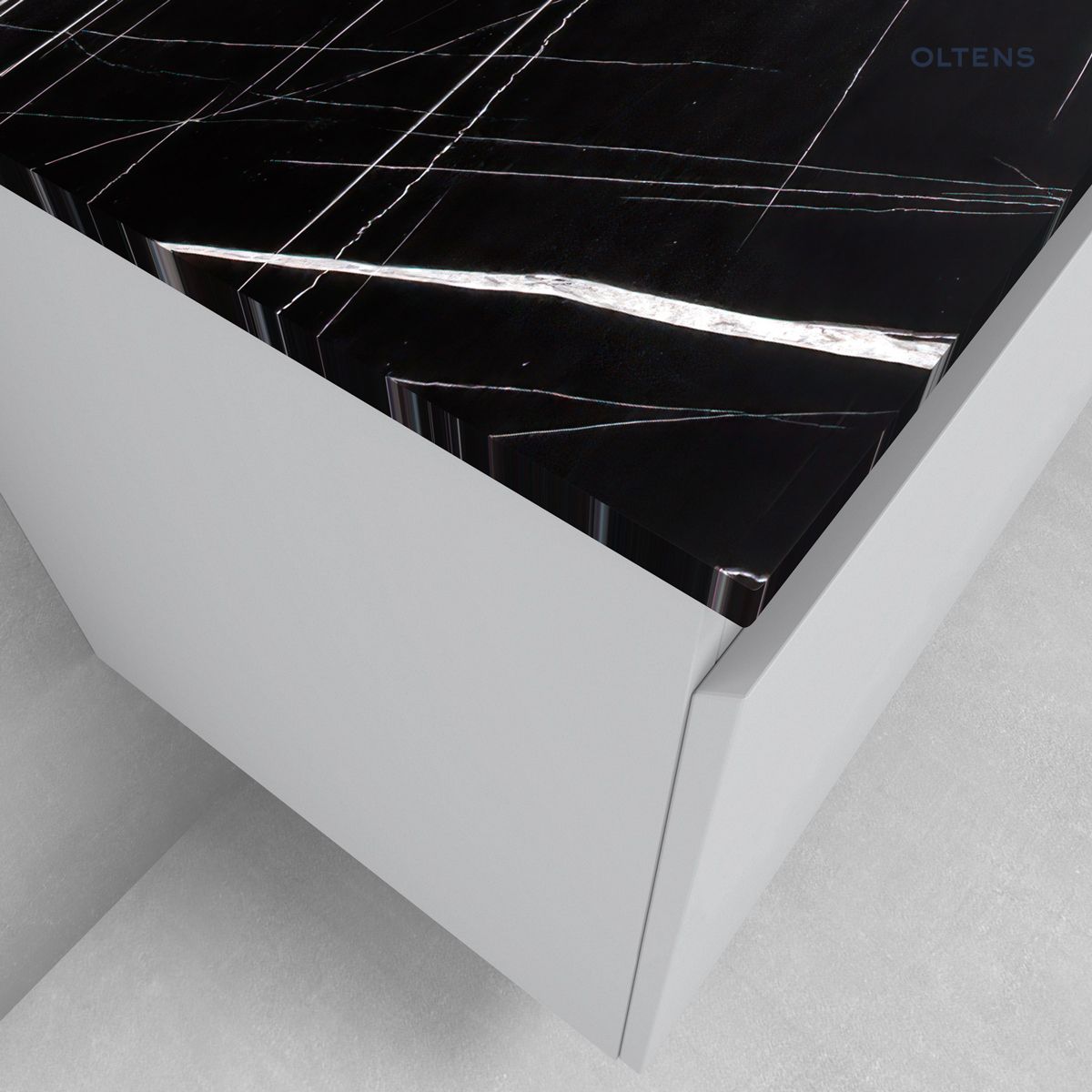 Opis produktu Zestaw Oltens Vernal szafka 100 cm podumywalkowa wisząca z blatem Tera szary mat/czarny marmur 68720700
