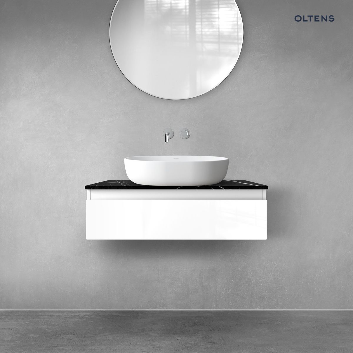 - Wariant koloru Oltens biały połysk, czarny marmur